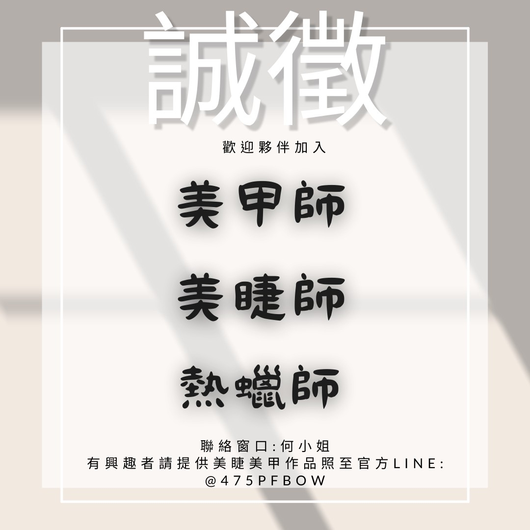 歡迎夥伴加入,誠徵美甲師、美睫師、熱蠟師