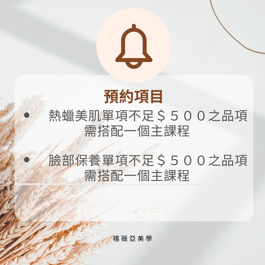 熱蠟美肌單項不足$500之品項需搭配一個主課程